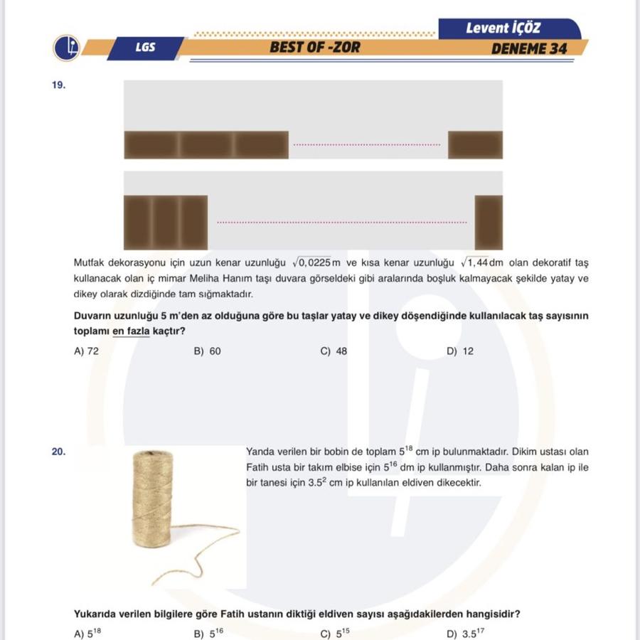 34. DENEME LEVENT İÇÖZ KİTAPLARINDAN SEÇME BEST OF ZOR SEVİYE DENEME